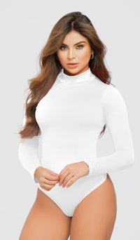 El cuello alto y las mangas largas te protegen del frío con estilo, sin perder el efecto reductor.