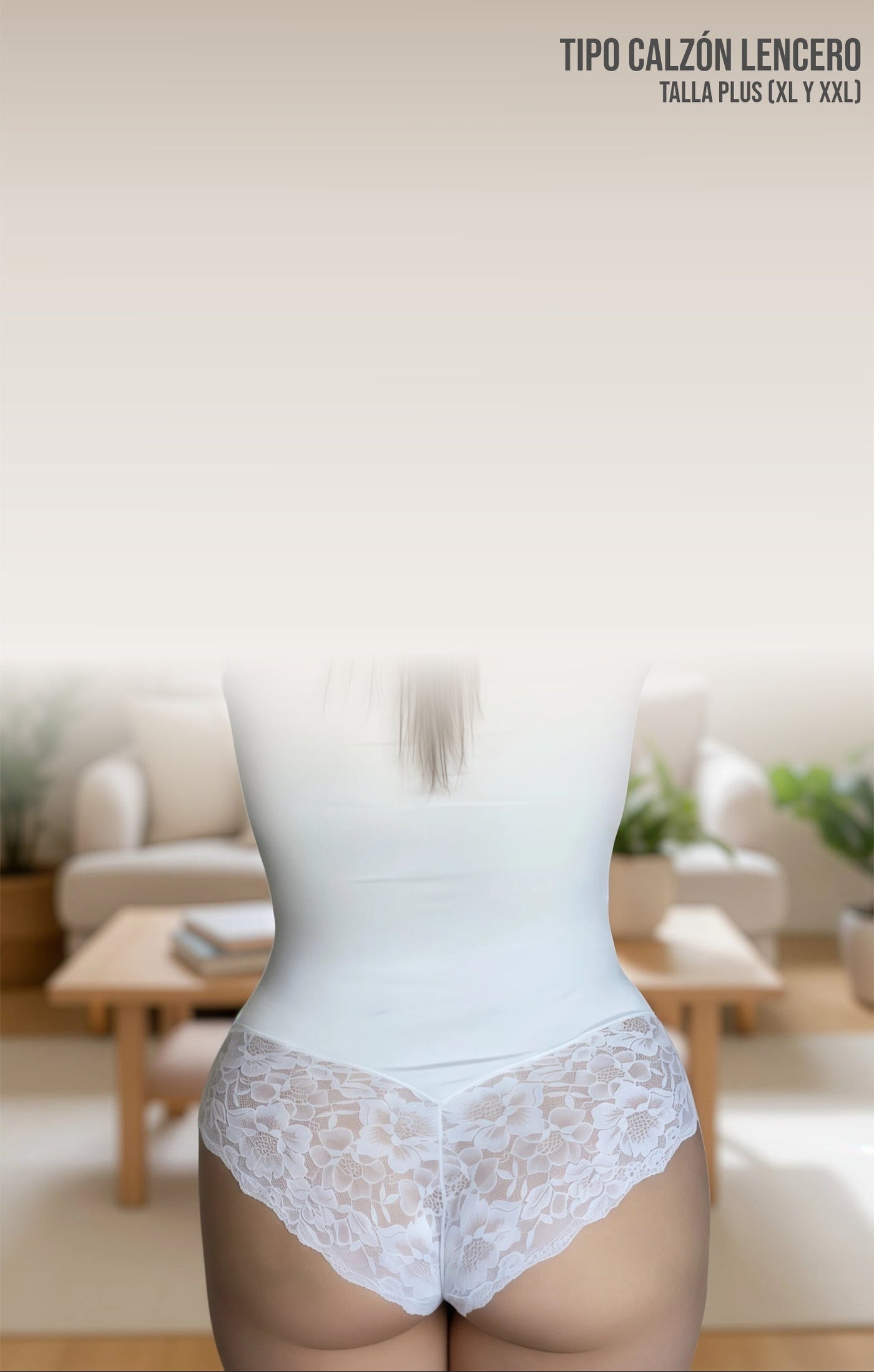Corte tipo colaless (en talla única) y calzón lencero (en talla plus).